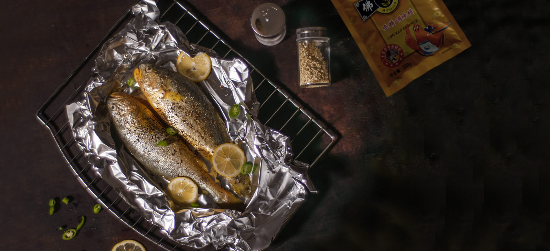 烤出來(lái)的魚(yú)肉質(zhì)細(xì)嫩,再加上一勺蔥油和胡椒提味